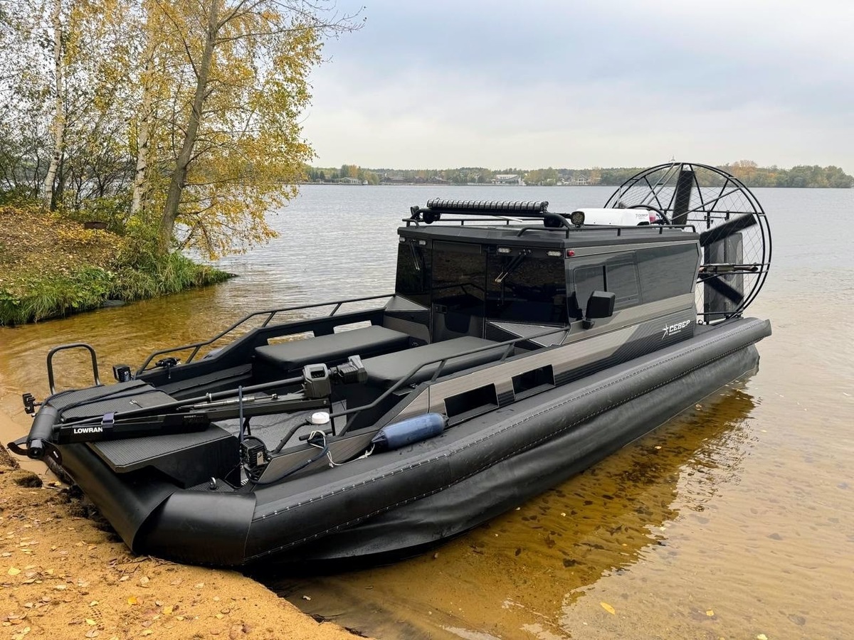 В продаже аэролодка Север Фантом 750К с самым мощным мотором Chevrolet LS3 (430 л.с.) в самой топовой комплектации. Эта модель имеет увеличенную переднюю площадку для пере...возки грузов или техники (рыбалки) за счет обратного наклона кабины. Просторный салон на 8 человек и возможность разложить диван в спальное место с отопителями позволит с комфортом ходить и ночевать даже зимой.