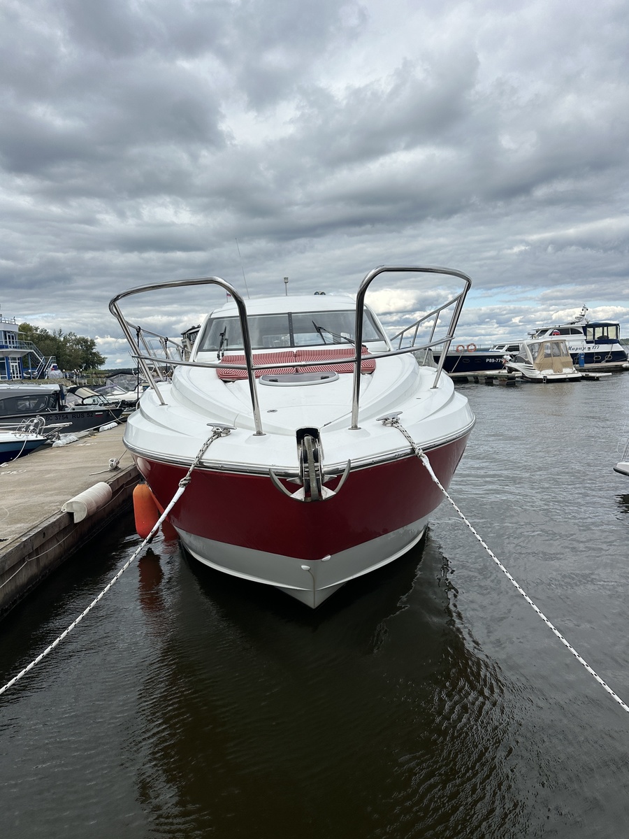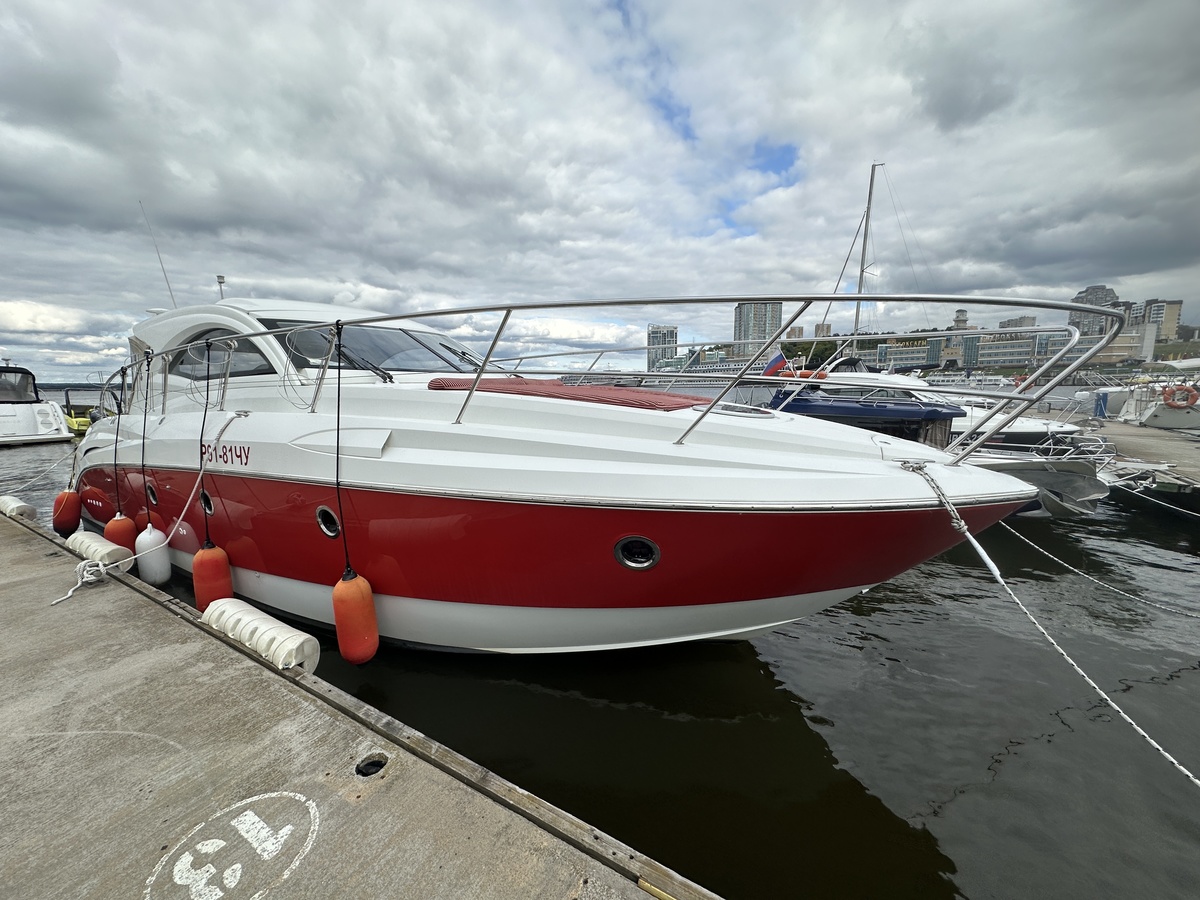 Прекрасный представитель французского бренда Beneteau, который был построен в 2010г., имеющего производственные мощности во Франции и Соединенных Штатах. Яркий корпус красного и белого цвета (Ruby Red) не даст вам остаться незамеченным среди многообразия лодок! Множество дополнительных опций сделает ваш отдых на яхте комфортабельным и беззаботным. Отличная саунд система превратит любую прогулку с друзьями в зажигательную вечеринку на яхте! За лодкой бережно ухаживали, что отражается в ее прекрасном состоянии. Наработка 970 м/ч! Характеристики: Длина полная: 12,1 м Длина корпуса: 11,31 м Ширина: 3,77 м Осадка: 1,1 м Водоизмещение: 7470 кг Вместимость: 12 чел Двигатель: колонка 2 x Volvo Penta D4 260 Максимальная скорость: 32 узлов Круизная скорость: 28 узлов Кают: 2 Спальных мест: 5 Количество гальюнов: 1 Объем топливного бака: 650 л Объем бака для воды: 200 л Материал корпуса: Пластик Тип двигателя: Дизель КОМПЛЕКТАЦИЯ: Обивка - sahara Эл. лебедка 1000W с д/у Тиковая отделка плавательной платформы с отсеком для хранения лестницы для купания Тиковая отделка кокпита Лежак для загорания на нос Компас, датчик топлива и датчик перекладки руля Гидроусилитель руля Прикуриватель 12 В Гриль в копите Два холодильника в кокпите и каюте 42л и 80 л Морская аудиосистема (очень громко) Керамическая плита Микроволновая печь 2-х спальная кровать в каюте владельца (1.70 х 2 м) Два спальных места в кормовой каюте (0.75 х 1.90 м) Розетки 220В Эл. туалет с накопительным танком 80 л Водонагреватель 25 л Аккумуляторы 12В 7 шт. Автоматическая и ручная трюмная помпа Кондиционер 16000 BTU Генератор 220 V - 50 Hz Onan Зарядное устройство для аккумуляторов 25 Амп Подруливающее устройство SP 80 Навигация речная рация TV антенна Портовый прицеп Возможен обмен: аquаdоr, аzimut, bаylinеr, bаvаriа, bеnеtеаu, сhараrrаl, сrоwnlinе, рrinсеss, fоur winns, gаlеоn, grаndеzzа, nоrd stаr, sеа dоо, dоrаl, rеgаl, sеа rаy, sunsееkеr, silvеr, rinkеr, mахum, fаirlinе, саrvеr, сrаnсhi, sеаlinе, windy, vеlvеttе, slidеr.