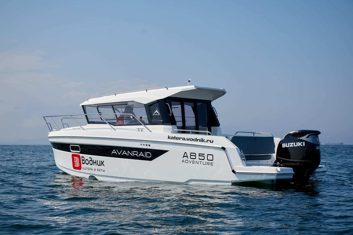 Примечание: Катер в наличии в г. Москва. СТОИМОСТЬ УКАЗАНА С УЧЕТОМ НДС. - Комплектация, цвет корпуса, отделочные материалы могут отличаться от представленных на фотографиях. Описание: Современный и функциональный катер Avanraid A850 Adventure идеально подойдет для путешествий и отдыха в большой компании. V-образный корпус с глубокой килеватостью и инновационной двухступенчатой конструкцией поперечных реданов обеспечивает уверенный ход даже по крупным волнам. С мотором мощностью 300 л.с. катер способен развивать скорость свыше 80 км/ч. Панорамное остекление закрытой комфортабельной рубки гарантирует превосходную обзорность, позволяя легко ориентироваться и уверенно управлять катером. Просторная носовая палуба и многочисленные ниши для хранения предоставляют достаточно места для хранения вещей и оборудования. Носовая каюта на нижней палубе предлагает до 4 спальных мест и гальюн, обеспечивая комфорт во время длительных путешествий. Avanraid A850 Adventure оснащен вместительным топливным баком объемом 400 литров и баком пресной воды объемом 115 литров, что обеспечивает автономность и удобство в длительных выходах. Avanraid A850 Adventure – открой мир приключений! На катер дополнительно установлены: ● Подруливающее устройство Quick ● Транцевые плиты ● Якорная лебедка Quick ● Якорный комплект ● Палубное покрытие Marine Rocket ● Звуковой сигнал ● Шторки салона ● Ковровое покрытие Стандартная комплектация: 🚤 СИСТЕМЫ: Топливный бак - 400 литров Бак пресной воды 115 литров Бак сточных вод 42 литра Туннель 125 мм и электропроводка для подруливающего устройства Автоматические и ручные осушительные помпы Система пассивной вентиляции в рубке, кабине гальюна Электропроводка и контур трубопроводов для подключения водонагревателя 🚤 ИНТЕРЬЕР: Консоль судоводителя с подстаканниками Кресло судоводителя с болстером, поворотным механизмом, газлифтом, регулировками Подножка судоводителя для управления стоя Консоль пассажира с подстаканниками, перчаточным ящиком, USB выходами Сиденье пассажиров с перекидной спинкой в передней части рубки Сиденье пассажиров в задней части рубки Мягкие подушки сидений пассажиров Стол в рубке. С подстаканниками на пневматической трехсекционной стойке Закладная для трансформации стола рубки в дополнительное спальное место Ниши для хранения в рубке Сдвижной люк в передней части рубки Световой люк в задней части рубки Распашной люк носовой каюты Сдвижные форточки бокового остекления рубки Верхнее освещение в рубке Подсветка пола рубки Камбузный блок с мойкой, холодильником и ящиками для посуды USB выходами рядом с камбузным блоком Сдвижная дверь в носовую каюту Спальное место в носовой каюте Верхнее освещение в носовой каюте Два точечных светильника USB выходами, для чтения в носовой каюте Подсветка пола каюты Распашной иллюминатор в левом борту носовой каюты Ниши для хранения в носовой каюте Мягкие подушки спального места носовой каюты Отделка стен носовой каюты Спальное место под рубкой Точечный светильник с USB выходом, для чтения в спальном месте под рубкой Мягкие подушки спального места под рубкой Кабина гальюна с умывальником, ящиками для хранения и электрическим унитазом Верхнее освещение в кабине гальюна Распашной иллюминатор в кабине гальюна Отделка панелей салона, подушек сидений и спальных мест, выполнена износостойким мо