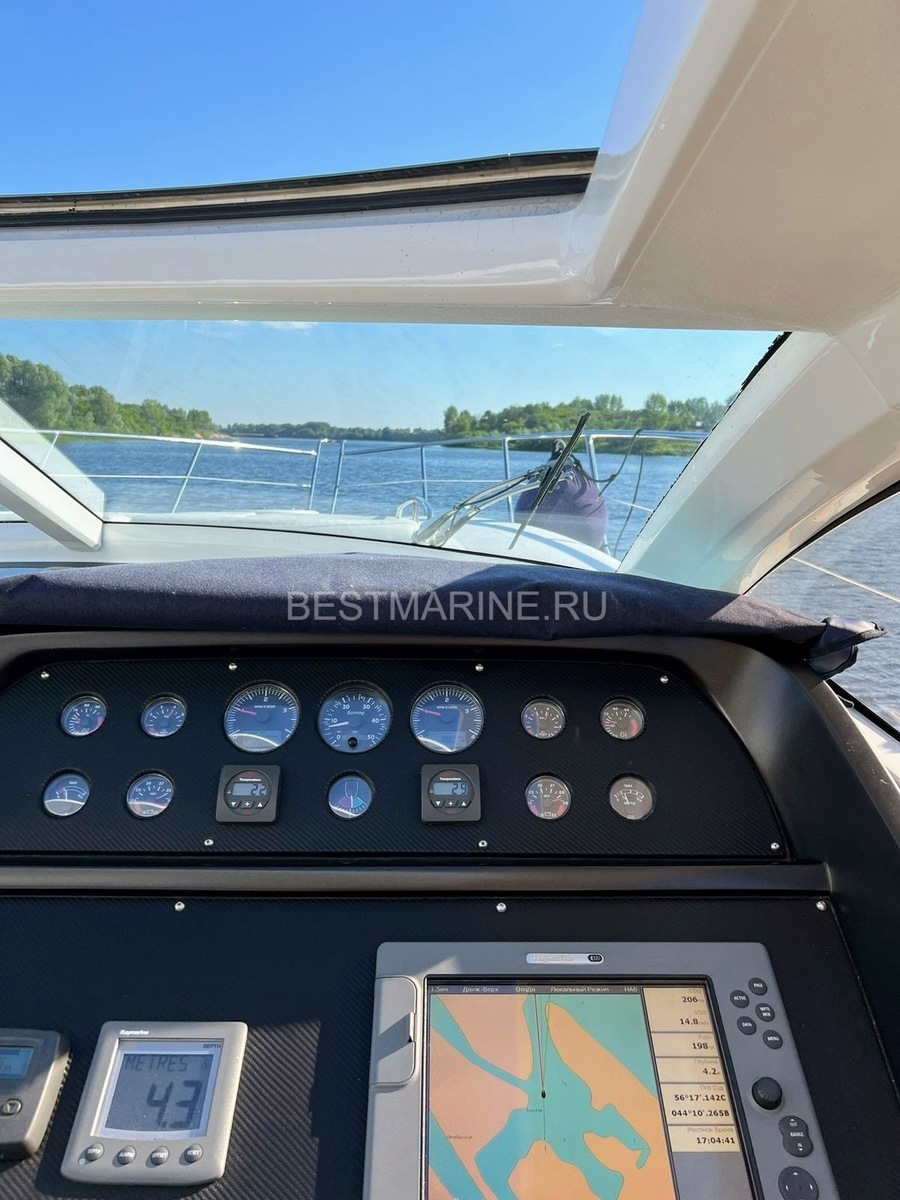 Sunseeker 47 Portofino открывает новые горизонты в движущейся симфонии линейки, где каждая деталь продуманна до совершенства. Раздвижная жесткая крышка дарит яхте универсальность без утраты естественного очарования открытой палубы. Защита от непогоды и ощущение свежего ветра — всего одним нажатием кнопки. В носовой каюте — королевская кровать king-size, в кормовой — уютная двухместная, а в салоне — полностью оборудованная кухня с холодильником, плитой, микроволновкой и раковиной. Большой плоский телевизор, DVD-, CD-проигрыватели и система объемного звучания создают домашний уют на море. Изогнутый диван-тростник превращается в ночное спальное место, а опускающийся телескопический столик добавляет функциональности. Просторный салон и широкая палуба, вместе с продуманной техникой и удобствами, обещают незабываемые путешествия. Практические плюсы: Легкость управления и хорошая маневренность для своей длины. Просторный кокпит и удобная организация пространства для владельца и гостей Надежная техника и широкий выбор опций Основные характеристики: ⏰ Год постройки - 2007 📏 Длина – 14,95 м 📐 Ширина – 4,3 м 🛶 Осадка – 1.1 м 🏋🏻 Вес – 23 000 кг 🐎 Двигатель – VOLVO PENTA 2 х 575 л.с. 🛤️ Наработка двигателя - 2190 м/ч ⛽ Запас топлива - 1320 л 💧 Запас воды - 360 👨👨👧👦 Пассажировместимость - 12 чел. Комплектация: генератор (наработка 1450 м/ч) отопитель webasto электрическая якорная лебедка климат-контроль холодильник сдвижная крыша в кокпите с электроприводом носовое подруливающие устройство кормовое подруливающие устройство электроплита микроволновка картплоттер автопилот эхолот посудомоечная машина транцевые плиты телевизор гальюн душ (3 шт.) тиковое покрытие лежак для загара ходовой тент стол в каюте речная рация береговое питание 220 В душ в кокпите бойлер розетки 220 В надвуной тендер